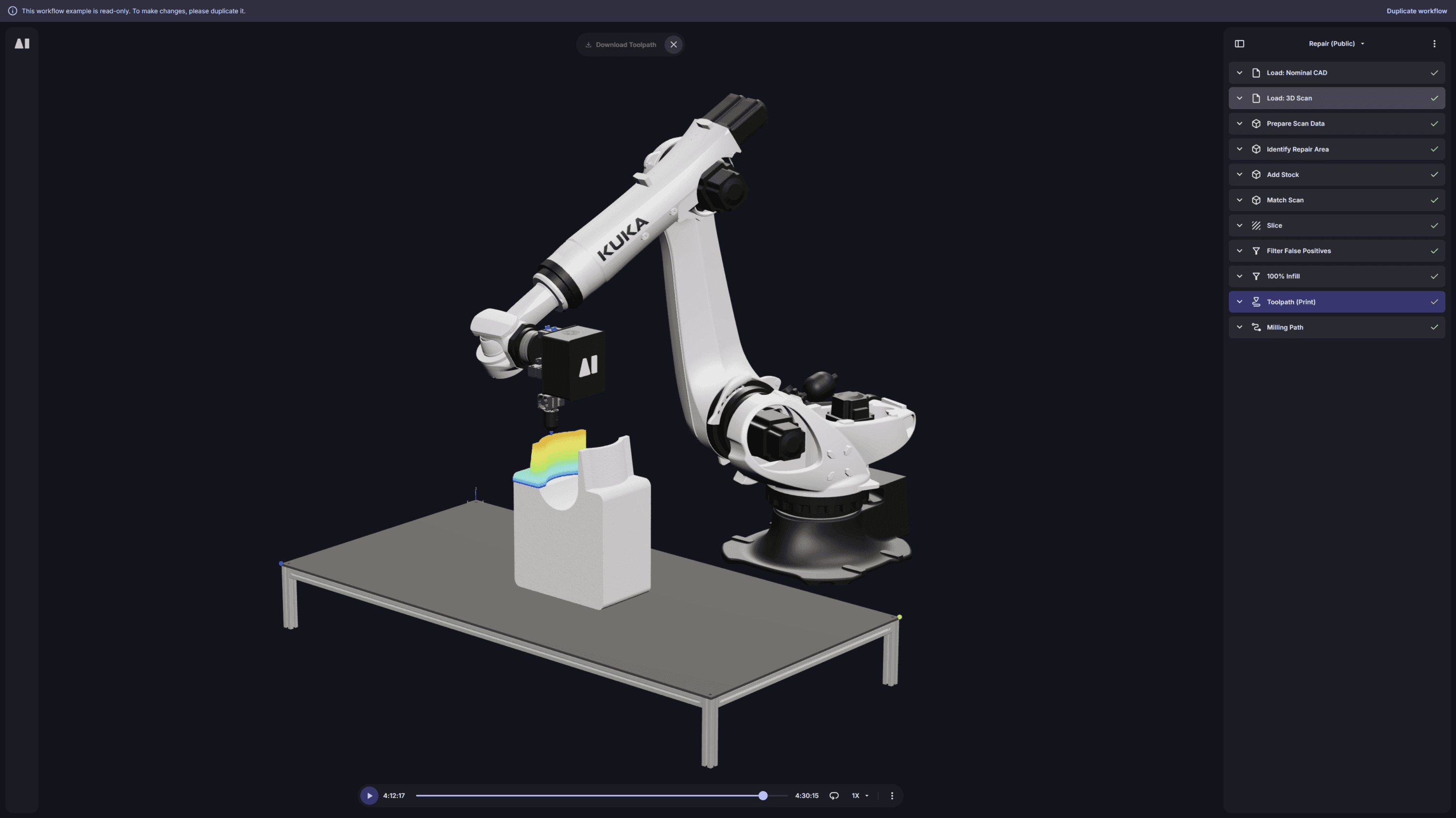 Aibuild's intelligent and award-winning AM platform Aibuild accelerates and automates the creation of even the most advanced, multi-axis toolpaths via a single, intuitive UI.